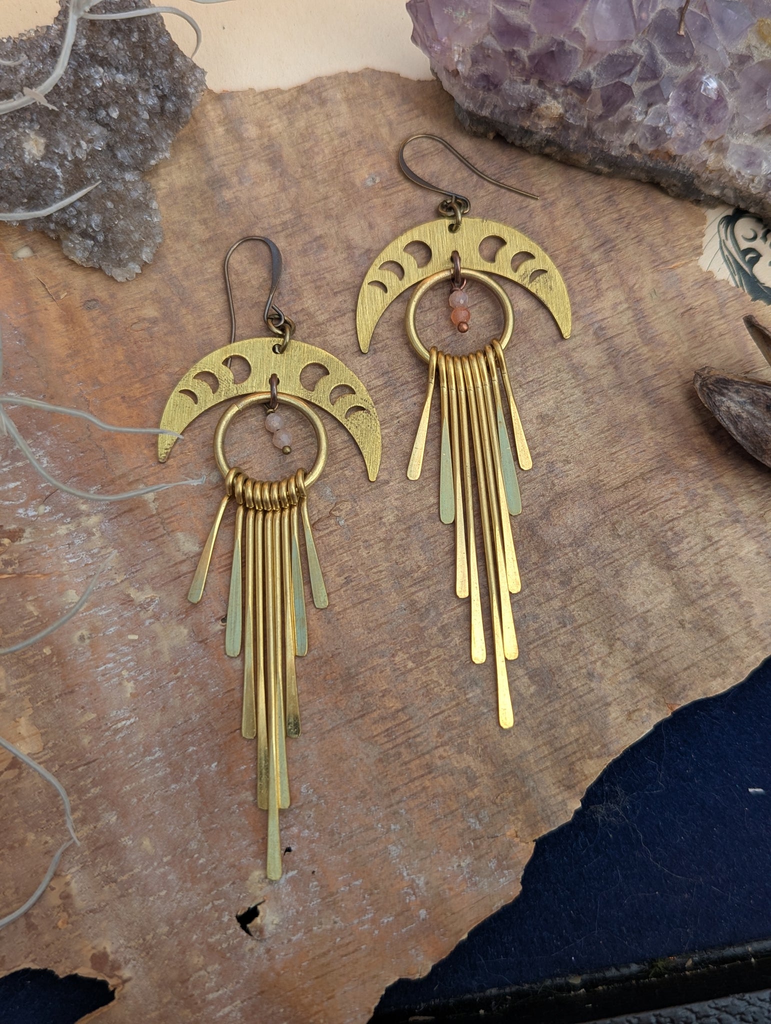 Brass moon phases with paddle fringe, lots of fun movement in these.