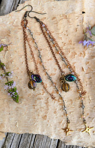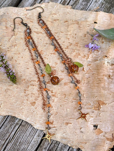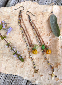 Fall Pumpkin Shoulder Duster Earrings - Iridescent pumpkins